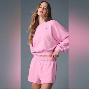 Alo Sweet Pink Cropped Accolade Crewneck NWT