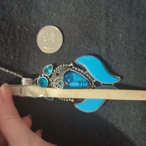 This exquisite silver pendant necklace features a stunning blue design, perfect for adding a touch of elegance to any outfit. The intricate detailing and vibrant colors make it a standout piece in any jewelry collection.