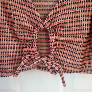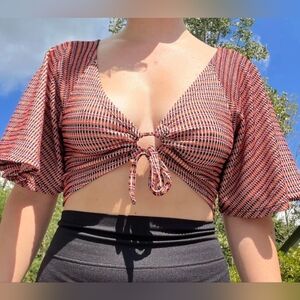 Urban Outfitters Red, Green, & Black Striped Tied Crop Blouse. Y2K. Size M. #SW