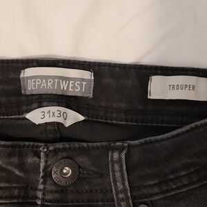 Pair of Buckle Departwest Trouper Jeans, Black, Performance Stretch, Distressed, size 31x30, in good gently pre-owned condition.