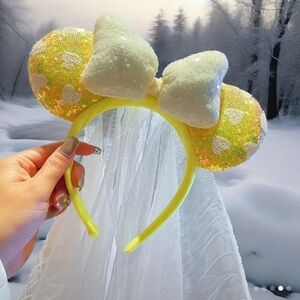 Adorable Wedding themed Yellow sequined Minnie Mouse Ears headband with veil