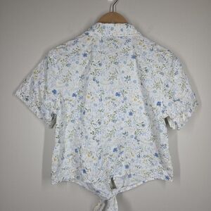 Vintage 90s Casey & Max Blue Yellow White Floral Embroidered Button Up Crop Med