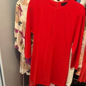 Vibrant orange sleeveless dress perfect for any occasion. Stand out with its bold color and sleek design.