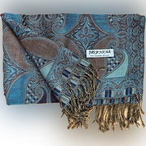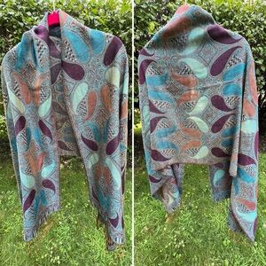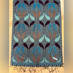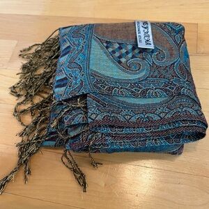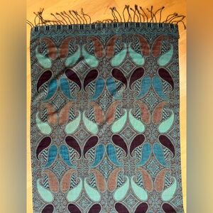 ☯️Like New Reversible Blue / Brown / Rust Paisley Pashmina/Silk/Wrap/Shawl