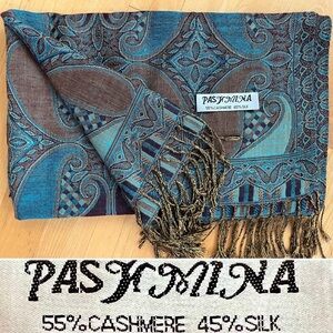 ☯️Reversible Blue / Brown / Rust Paisley Pashmina/Silk/Wrap/Shawl