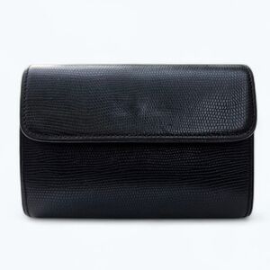 Sleek black crossbody bag. Textured finish. Adjustable strap. Perfect for everyday use.