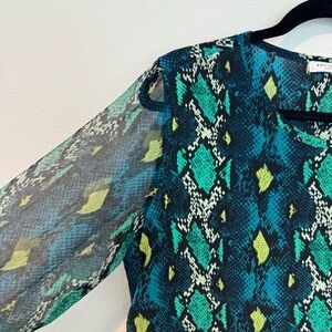 Equipment Femme 100% Silk Blue Snakeskin Print Sheer Long Sleeve Blouse