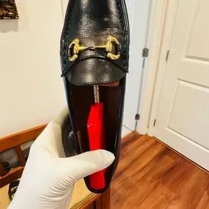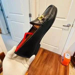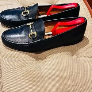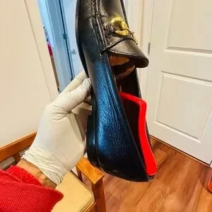 Jay Butler’s Horse Bit Black Leather Loafers with Gold Buckle.