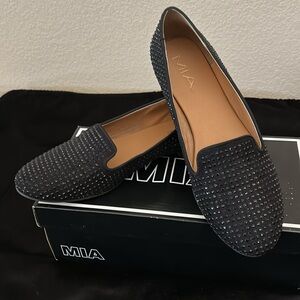 MIA Black Rhinestone Studded Flat Loafers Size 8.5