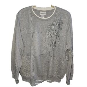 This white 3X shirt is in great condition. The fitted shirt has darts in front and back, a button front, and long sleeves with cuffs. The cotton, polyester, and spandex fabric top is machine washable and line dry. The approximate measurements are 25" across the chest, 28" across the hips, and 28" from the back neckline to the hem.