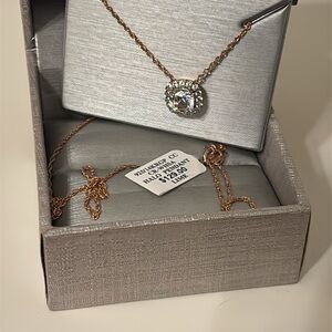 Zales Rose Gold and Silver Halo Pendant Necklace/ NWT