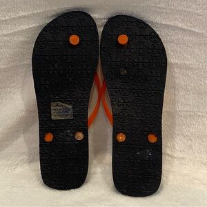 Tory Burch Thin Flat Thong Flip-Flops Flip Flops Sandals Orange Navy Size 8M EUC
