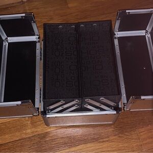 Stylish & Spacious Gunmetal Silver Makeup Case by London SOHO New York. Perfect for organizing cosmetics. The makeup in the photos is not included. The items are there to show how much room this case has!