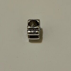 Elegant clover charm by Brighton. Features green heart-shaped petals and silver outlines. Central green gem adds sparkle.
