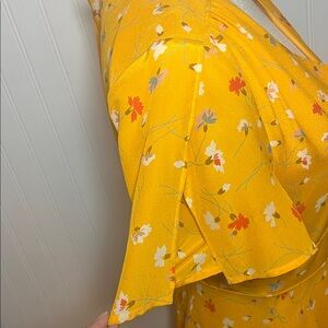 Brighten your wardrobe with this charming yellow dress, featuring a delicate floral pattern. Perfect for any occasion