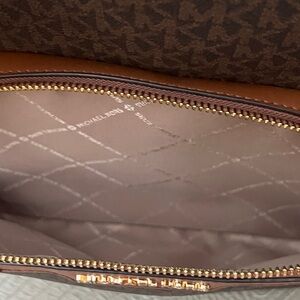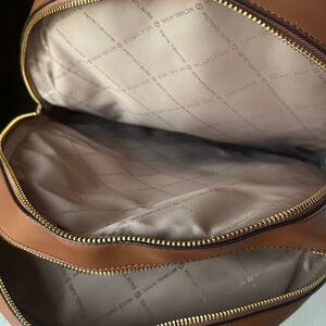 Elegant Michael Kors backpack with signature pattern. Rich brown tones. Ideal for daily use. Backpack is in like new condition. See pictures. Has 2 major outside zip pockets and smaller zip pocket in front. Within backpack other smaller pockets. 14 1/2 H x 11W x 4 1/2D