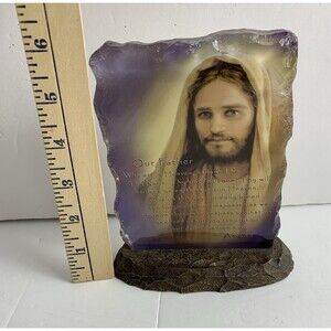 Bradford Exchange Reflections of Faith "The Lords Prayer" Christian Plaque by Greg Olsen 6 inches tall with Jesus depicted. It is in good preowned condition and is made of resin or something similar. It is made to look like stone.