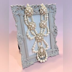 Saks Fifth Avenue Elegant Cream Beaded Chunky Statement Necklace