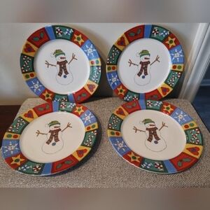 Set of 4 Snowman Country Christmas Plates