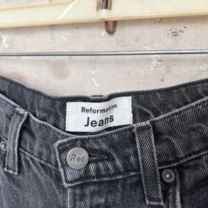 Reformation jeans, reformation star jeans, reformation black jeans. Reformation grey jeans, reformation ankle jeans, reformation high rise jeans, reformation straight leg jeans, star detail jeans