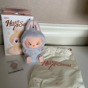 Discover the enchanting Skullpanda L'Impression Series Collectible Figure Lightning. This adorable figure features a blend of soft purple and blue hues, perfect for adding a whimsical touch to your collection. Box opened comes with collectible card bought from the pop mart app!