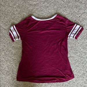 V-neck t-shirt featuring the iconic Wonder Woman logo in white. Longer fit and gauzy/layering material.