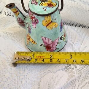 Very pretty vintage Empress Arts teapot, hand painted enamel on metal. Butterfly design.
