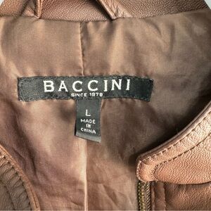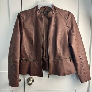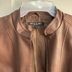 Baccini Women's Brown Faux Leather Cardigan style Jacket gold zips Size Large