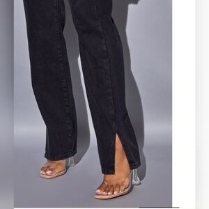 You're weekend outfit is finally sorted with these jeans. Featuring a washed black denim material with a split hem design, we're obsessed. Pair these with a crop top, chunky gold accessories and heels for a brunch date.