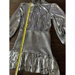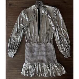 Retrofete Piper Mini Dress metallic silver Smocked Gunmetal XS party disco