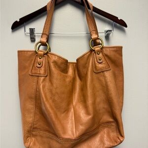 Stylish and versatile tan leather tote bag, perfect for everyday use. Features durable handles and a spacious interior.