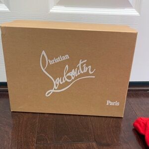Elegant Christian Louboutin silver heel with signature red sole. Perfect for events. ONLY WORN TWICE! Comes with shoe box and shoe bag!