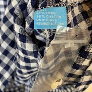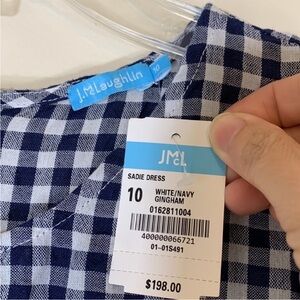 NWT. J McLaughlin Sadie Linen Blend White Navy Gingham Dress.
