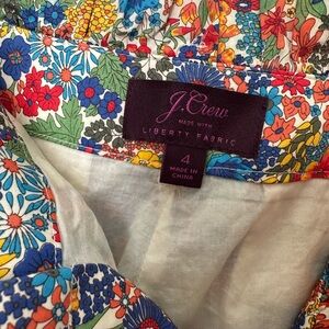 Bright floral pattern. High waist design. J Crew collab with Liberty Fabric. Size 4. 100% cotton.