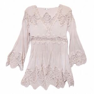 POL Ethereal Bell Sleeve Lace Tunic in Light Pink. Size Small. In excellent very gently/lightly worn condition.