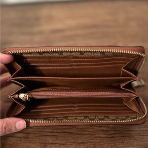 Coach Saddle Brown Leather Accordian Zip Wallet