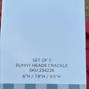 Charming set of three bunny heads. Perfect for holiday decor. Features a crackle finish.
