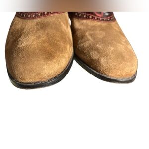 Stylish Cole Haan Oxfords with brown suede and burgundy leather. Features red laces for a bold accent.