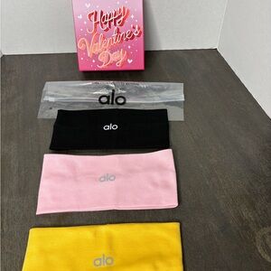Trio of ALO Yoga headbands. Perfect for workouts. Includes black, pink, and brown colors.🖤🤎🩷 I accept reasonable offers🖤🤎🩷 The headbands are super stretchy and beautiful.
