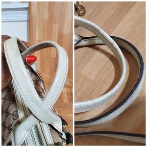 This authentic Gucci Brown GG Canvas Princy Satchel Bag is in it's good pre-owned condition has sign of use. The exterior canvas is clean and beautiful. Interior is clean. The base edges shows little scratches. The handles shows some scratches.