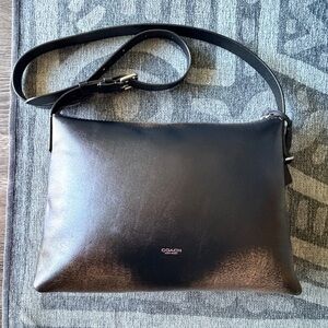 NEW MICHAEL KORS MANHATTAN BLACK OIL SLICK NEON SATCHEL SCHOOL BAG CROSSBODY