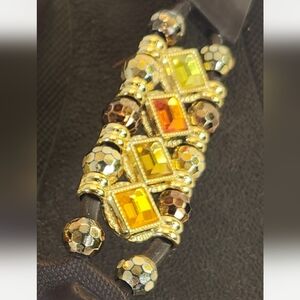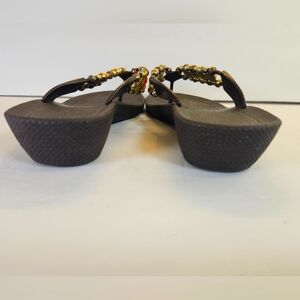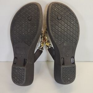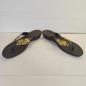 Gold Bronze Rhinestones Embellished Brown Rubber Flipflops Sandals S 7M NWOB