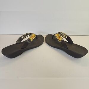 Stylish brown sandals featuring vibrant embellishments. Perfect for adding a touch of elegance to any outfit. Unbranded; never worn