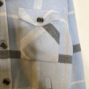 Elevate your wardrobe with this chic blue plaid utility jacket. Perfect for any casual outing, it combines style and comfort effortlessly.