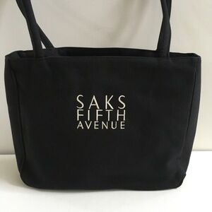 SAKS FIFTH AVENUE Black Tote BAG Purse Handbag Embroidered Logo Y2K NEW