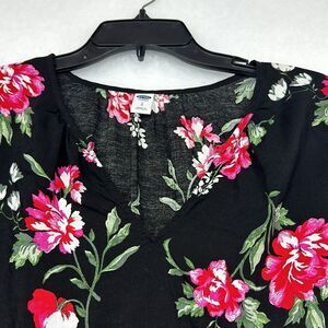 Old Navy Black Pink Floral Blouse Women’s Large Flowy Long Sleeve