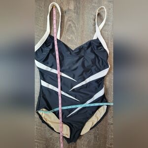 Carol Wíor Classic Splice One-Piece Swimsuit Women's 16 Black & Bone Slimming