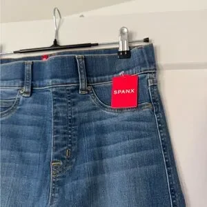 NWT SPANX Wide Leg Seamed Denim Flare Jeans Pull On Style Size S
