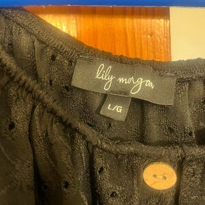 Chic and stylish black off-shoulder top with eyelet detailing and ties at the bottom Perfect for any occasion.