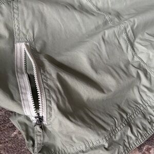 Pale sage green, functional zip pockets, Velcro adjustable cuffs.